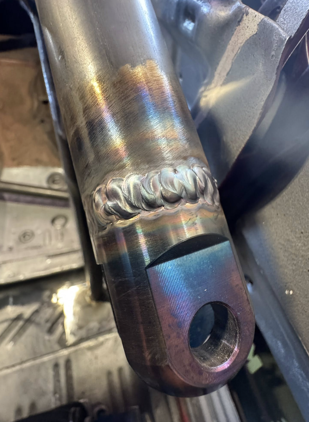 With all the welding above between the halo and the dash runners at the main hoop, it’s time to raise the cage up and zip up all the joints.