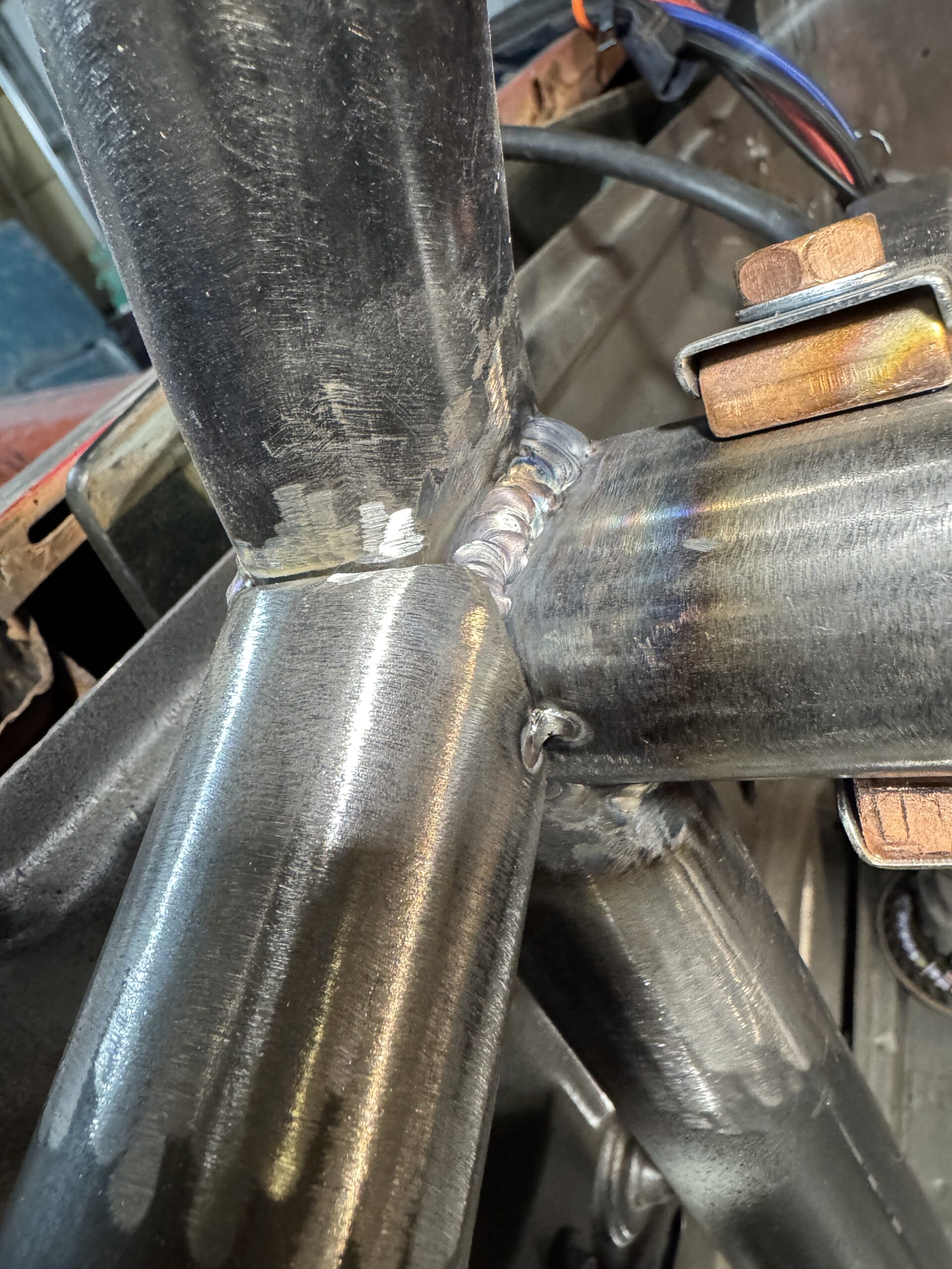 It is so critical to weld all around every bar and not leave any part of the tube fitment without weld. This also should be accompanied with gussets whether tube gussets or triangular gussets. I’ve opted for triangular gussets with appropriate sized holes for misc usage in the future.